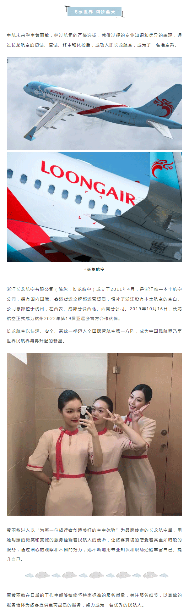 中航未来学生黄丽敏任长龙航空空乘丨中航未来毕业生巡礼