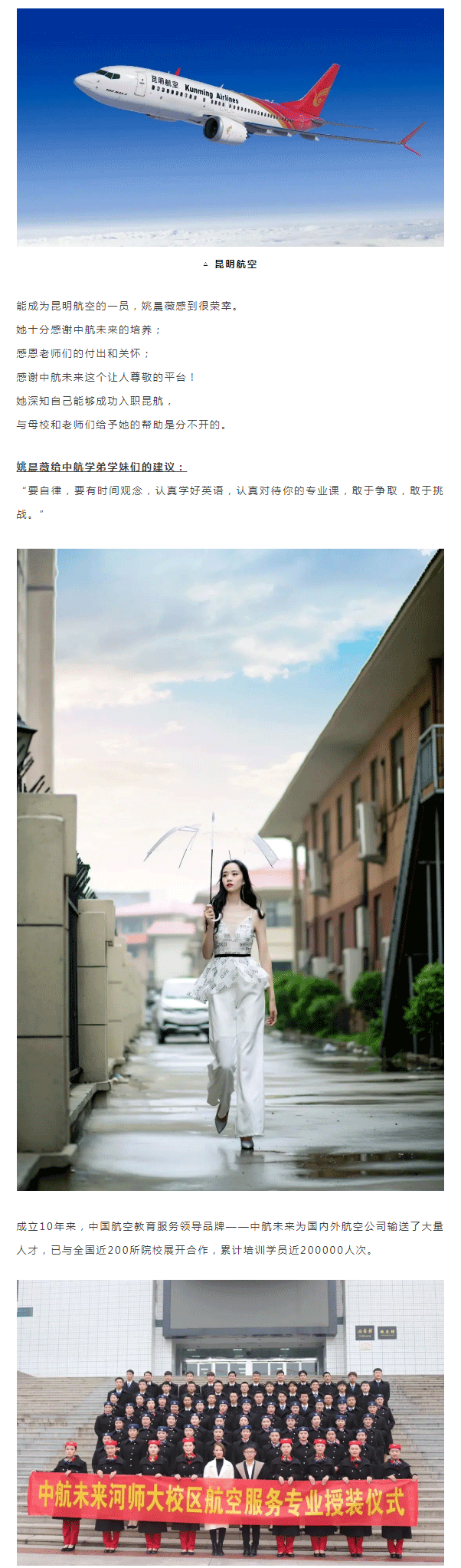 中航未来学生姚晨薇入职昆明航空丨中航未来毕业生巡礼